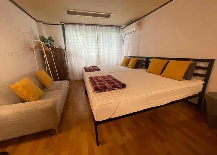 The accommodation is equipped with an electric kettle, a fridge, and kitchenware, ensuring your comfort. The property is also within a 200-metre distance of Hyundai 4th Apartment bus stop and within a few blocks of Sapyeong underground station.